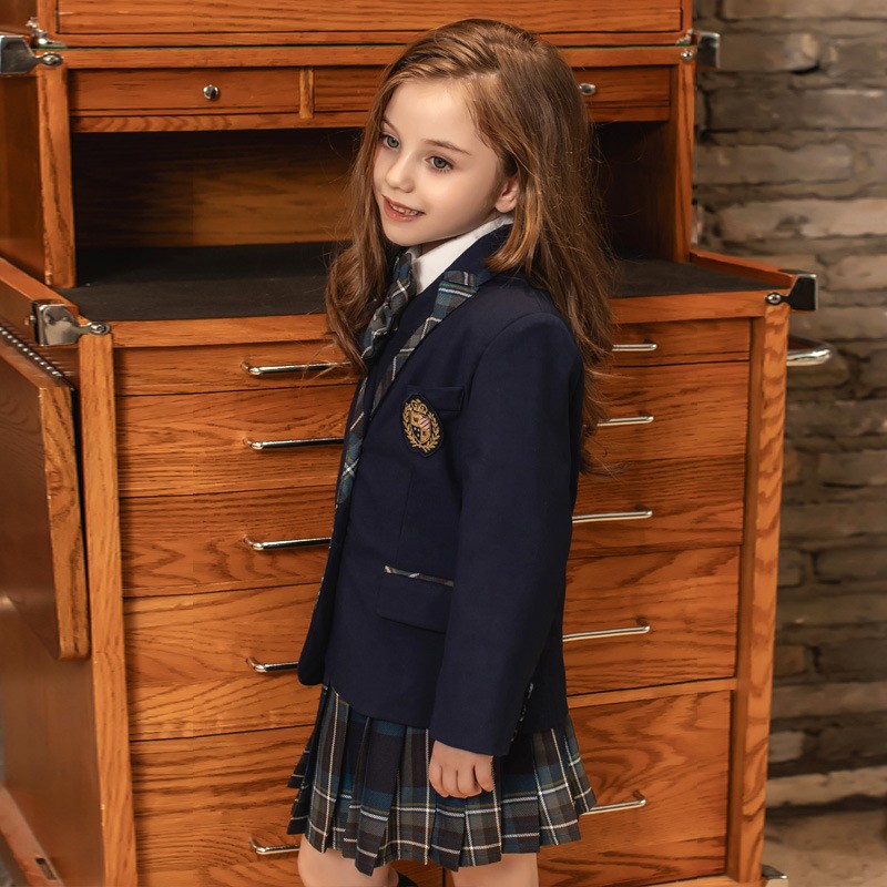 صورة ظلية أكاديمية تقليدية: تجسد السترة المخصصة والتنورة ذات الطيات أسلوب المدرسة البريطاني الكلاسيكي ، مما يخلق مظهرًا رسميًا يمكن التعرف عليه على الفور مثاليًا للاحتفالات والصور الفوتوغرافية.