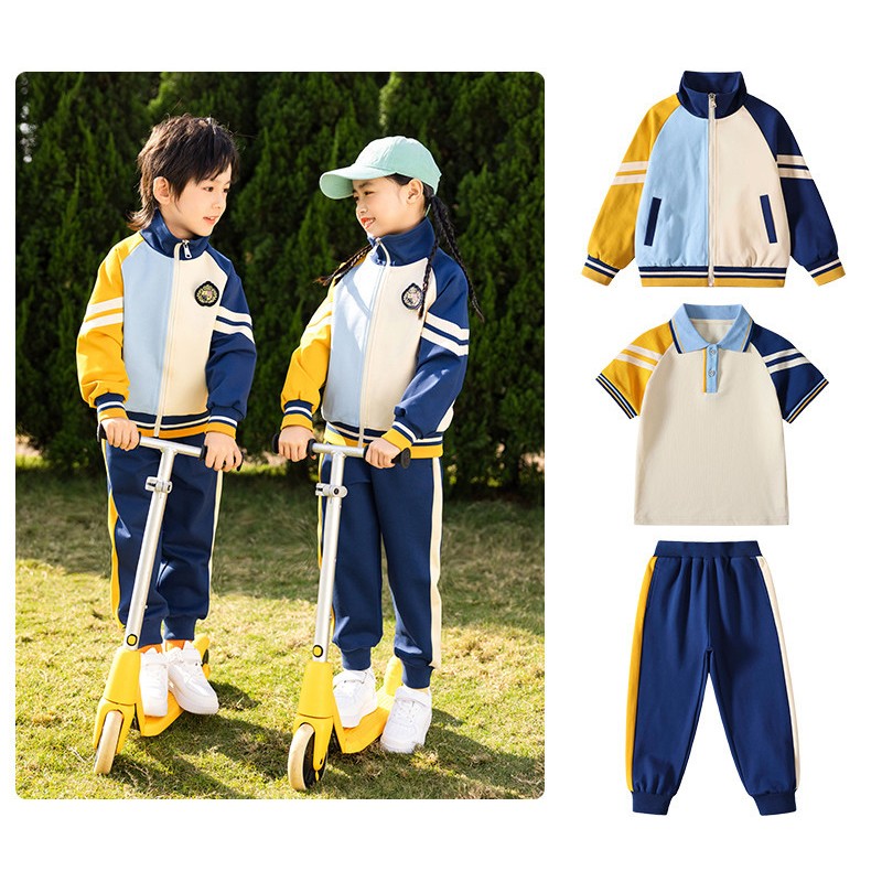 يتميز هذا النظام الموحد النابض بالحياة بلوحة ألوان متماسكة من الأزرق والأصفر والأبيض الفاتح مما يخلق تناغمًا بصريًا في جميع القطع. تقدم المجموعة حلولاً عملية لمواسم مختلفة مع الحفاظ على جمالية رياضية موحدة مثالية للحياة المدرسية النشطة.