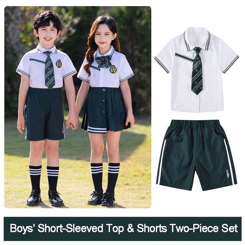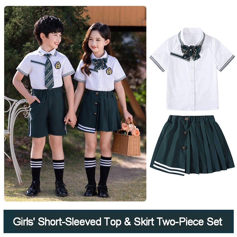 تجمع هذه المجموعة الأنيقة باللون الأخضر والأبيض بين التصميم الدراسي التقليدي مع الراحة المثالية في الصيف. تخلق لوحة الألوان الهشة والتفاصيل المكررة مظهرًا متميزًا مناسبًا لكل من الملابس اليومية والمناسبات الأكاديمية الخاصة.