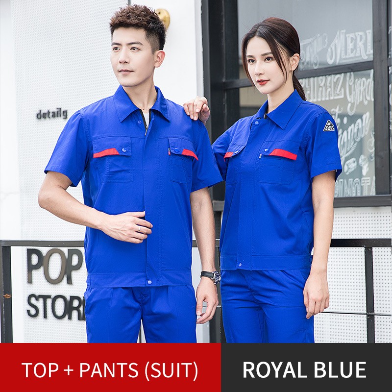 تجمع ملابس العمل الاحترافية هذه بين قماش قطني ناعم من البوليستر و 3% ، مما يوفر توازنًا مثاليًا من المتانة والراحة والتبديد الثابت الفعال لبيئات التصنيع الحساسة أثناء ظروف الطقس الدافئ.